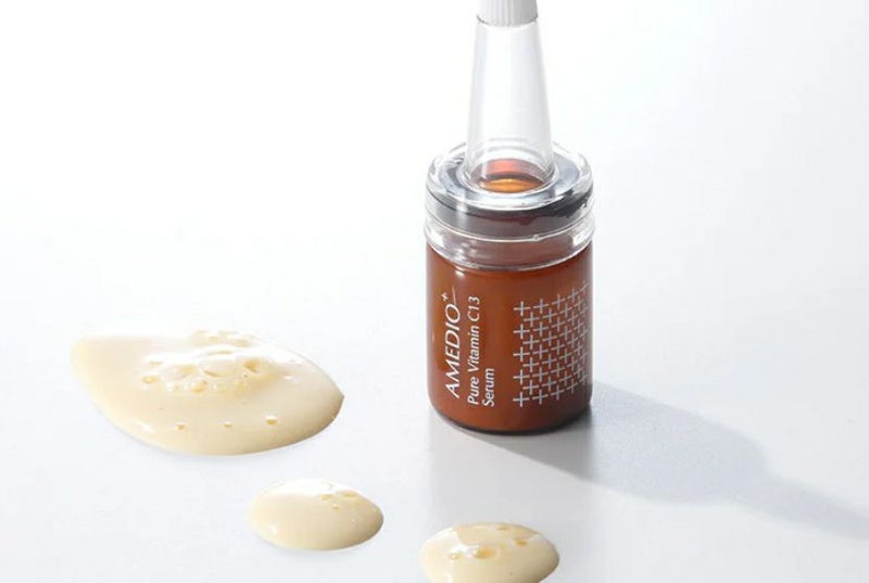 美容医療の現場で使われるビタミンCの濃度が平均9~10%なのに対し、AMEDIO+の美容液のピュアビタミンC*1の濃度は13%と濃密*2配合し、自宅ケアでも即効性*3を実感。